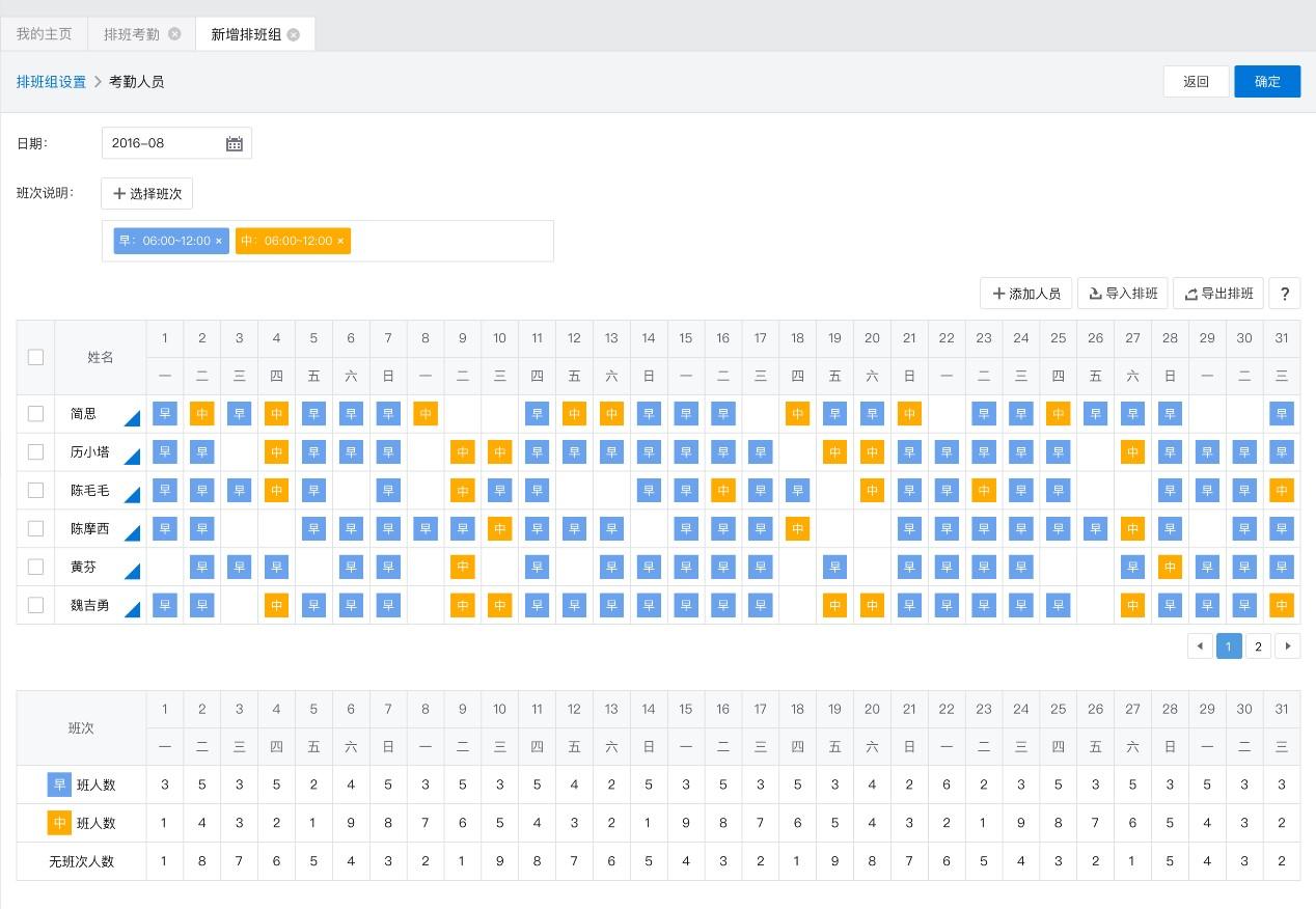 (2)班次支持跨天设置,以便为夜班人员进行排班。