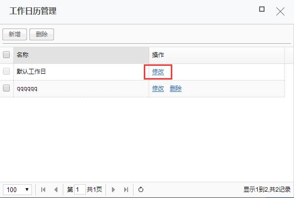 3、选择对应的工作日历,点击修改