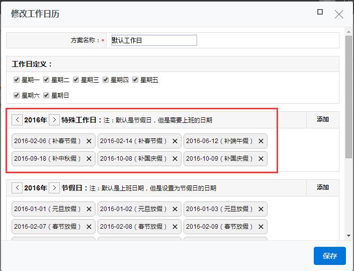 5、如果特殊的周末需要定位,可以在“特殊工作日”添加。