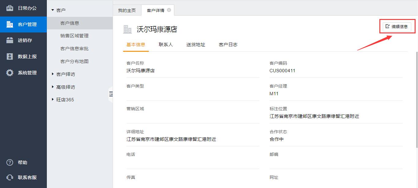3、【编辑信息】修改客户信息