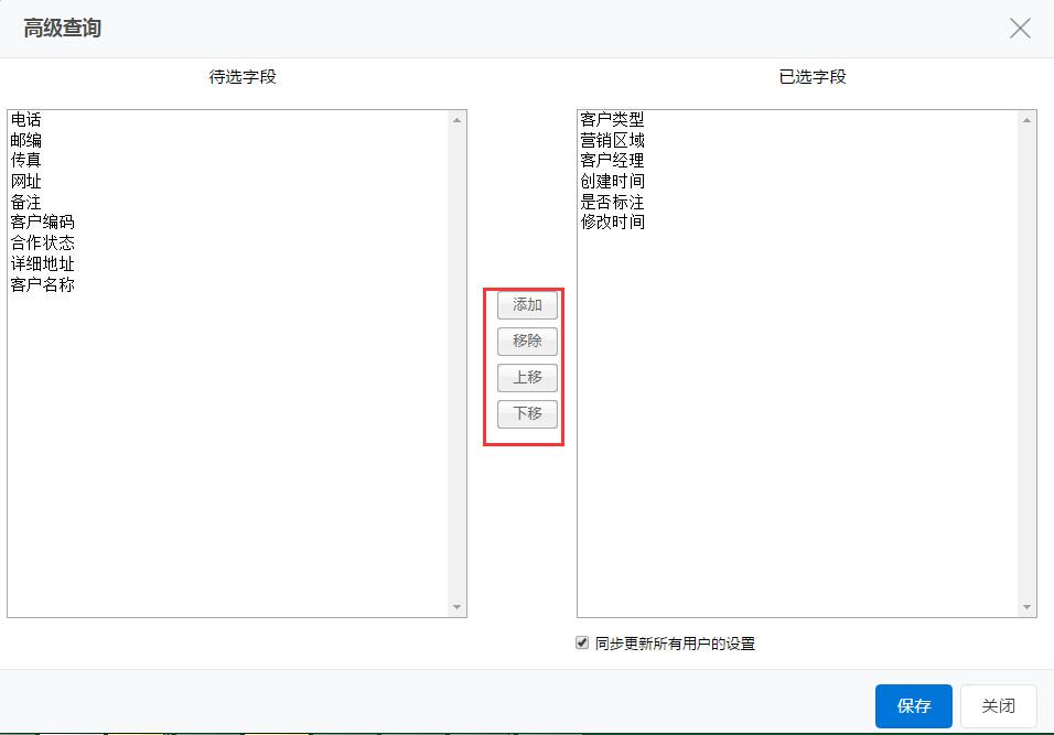 此设置可以修改查询条件是否展示/查询字段先后顺序