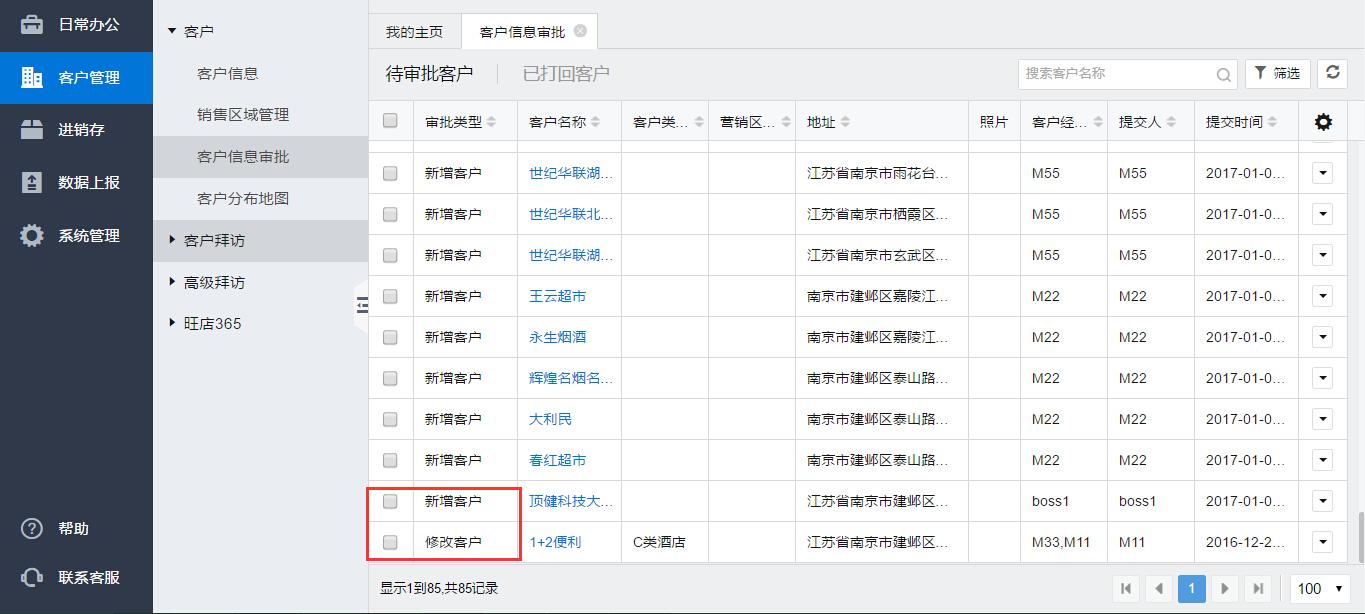 1、选择部门客户信息审批,审批通过;
