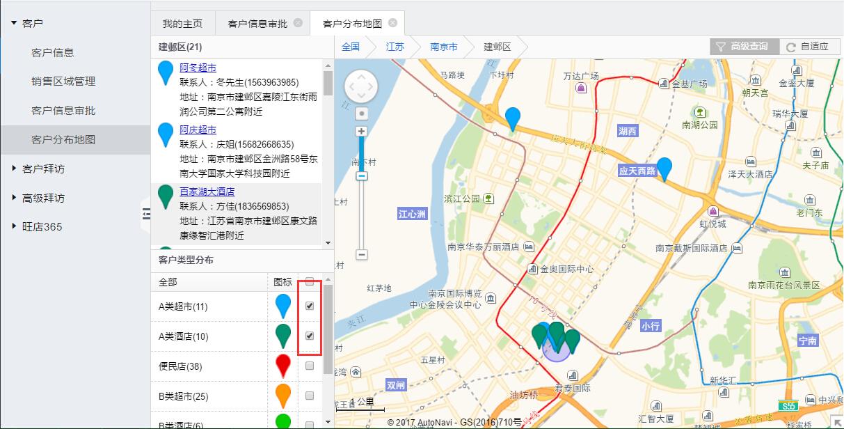 可以通过勾选客户类型,筛选客户的分布情况