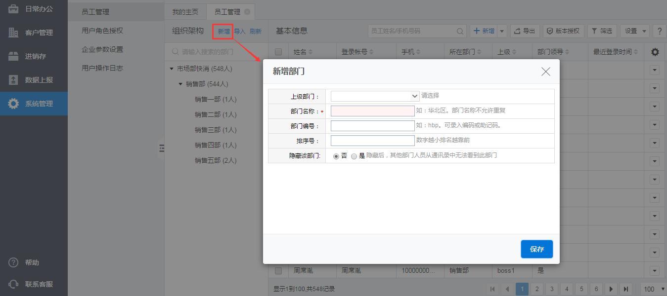 隐藏该部门:选择‘是’,其他部门的人员在通讯录中无法查询该部门人员。