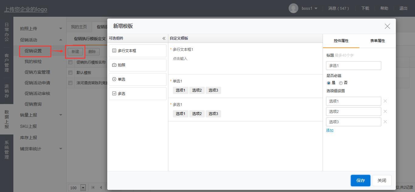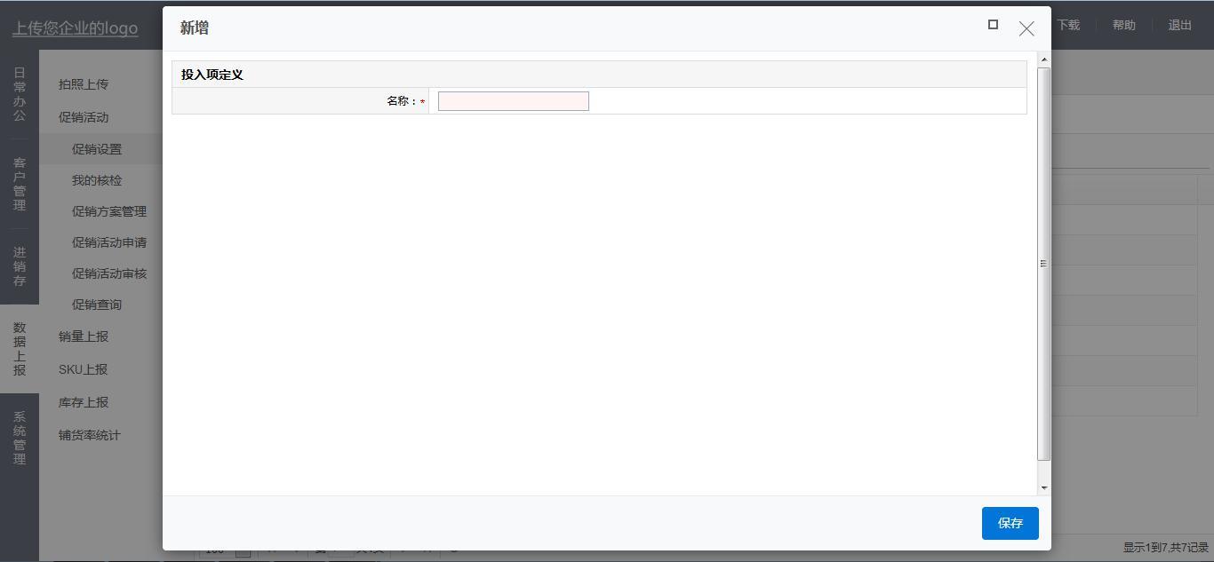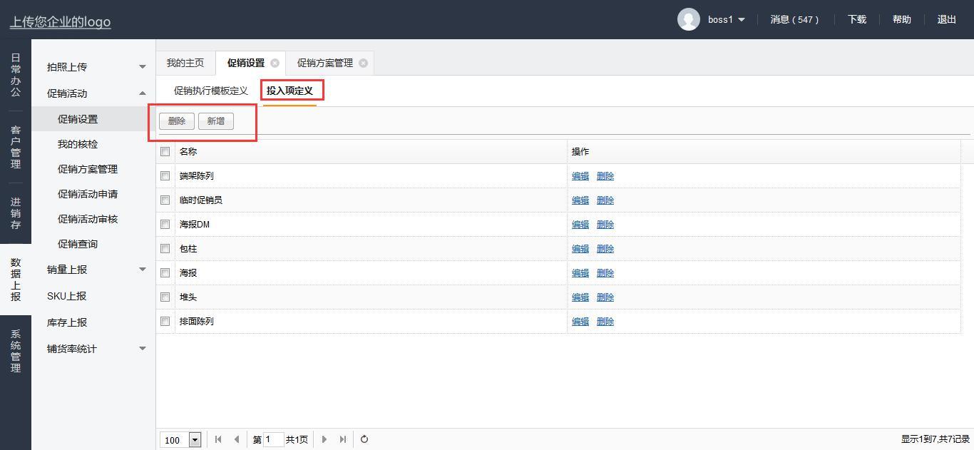促销设置:此功能可以自定义促销上报中使用的模板以及活动需要用到的物品投入项。