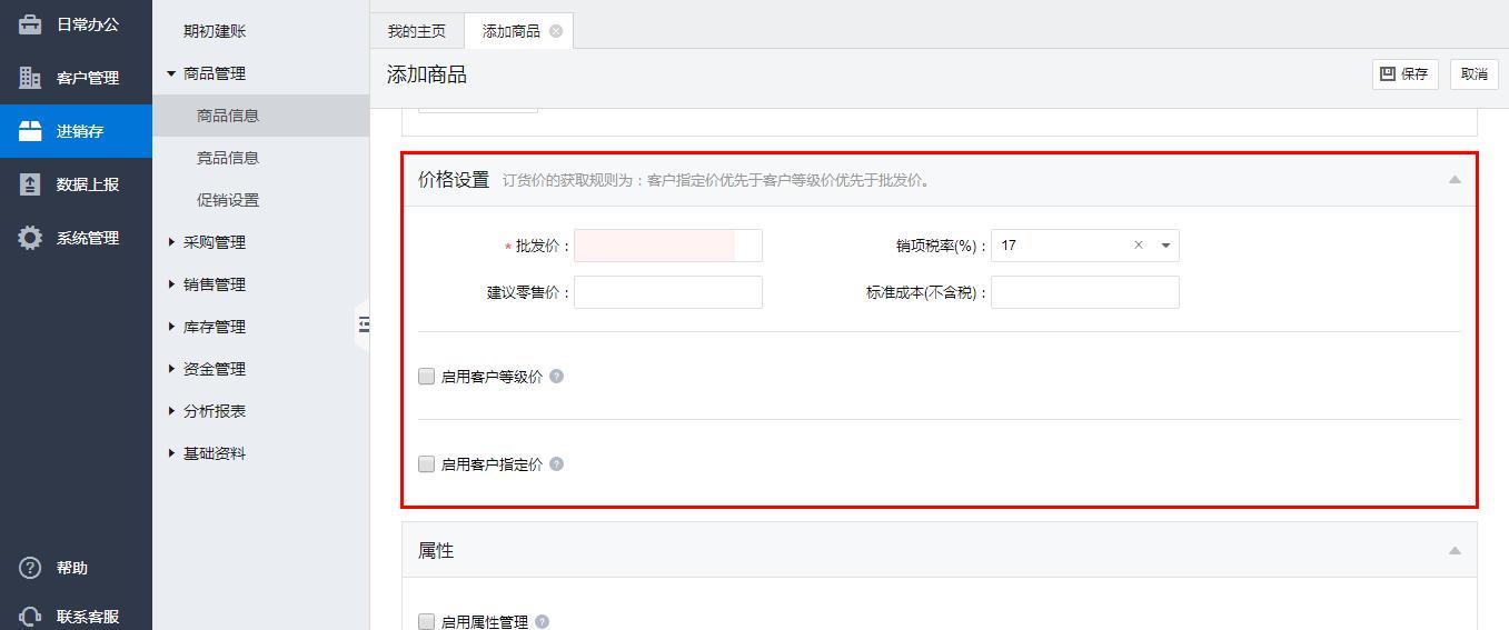 销项税率(默认17%,已经建立的税率建议不要修改,会影响商品毛利的计算)