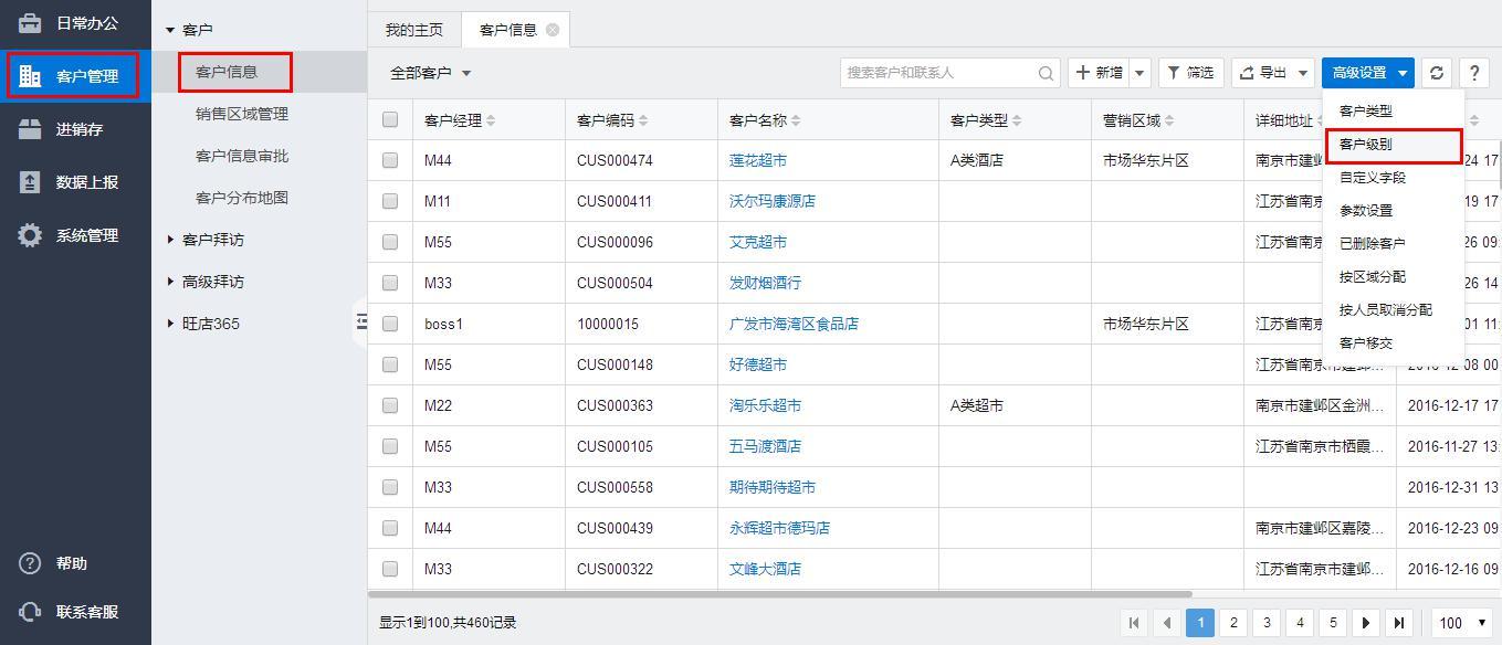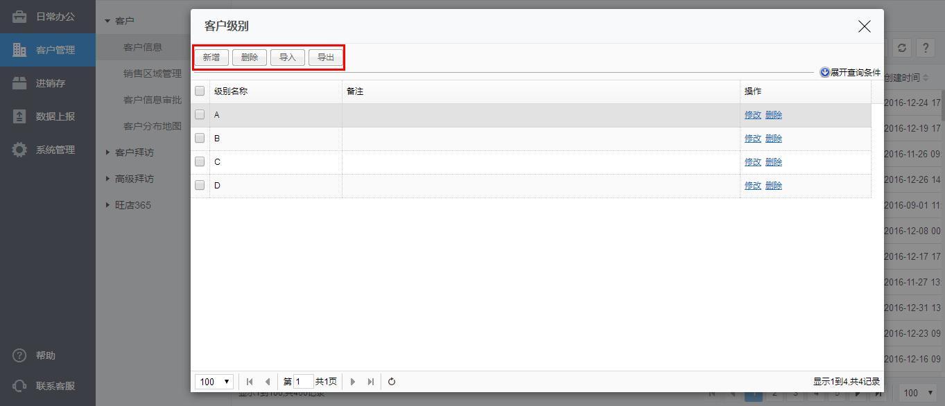 1)、客户菜单—高级设置—客户级别—新增客户等级