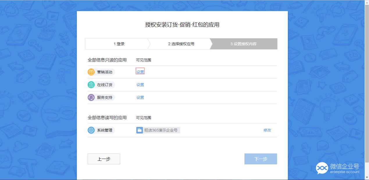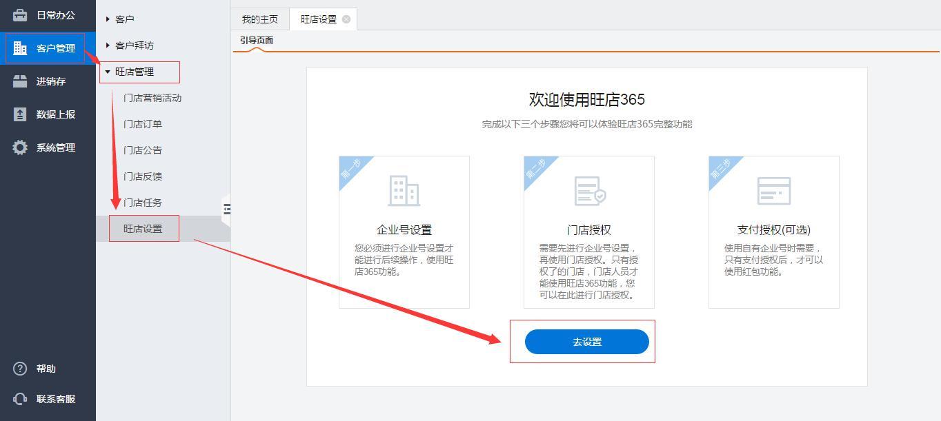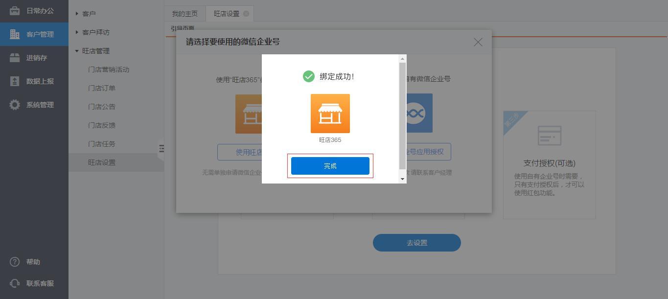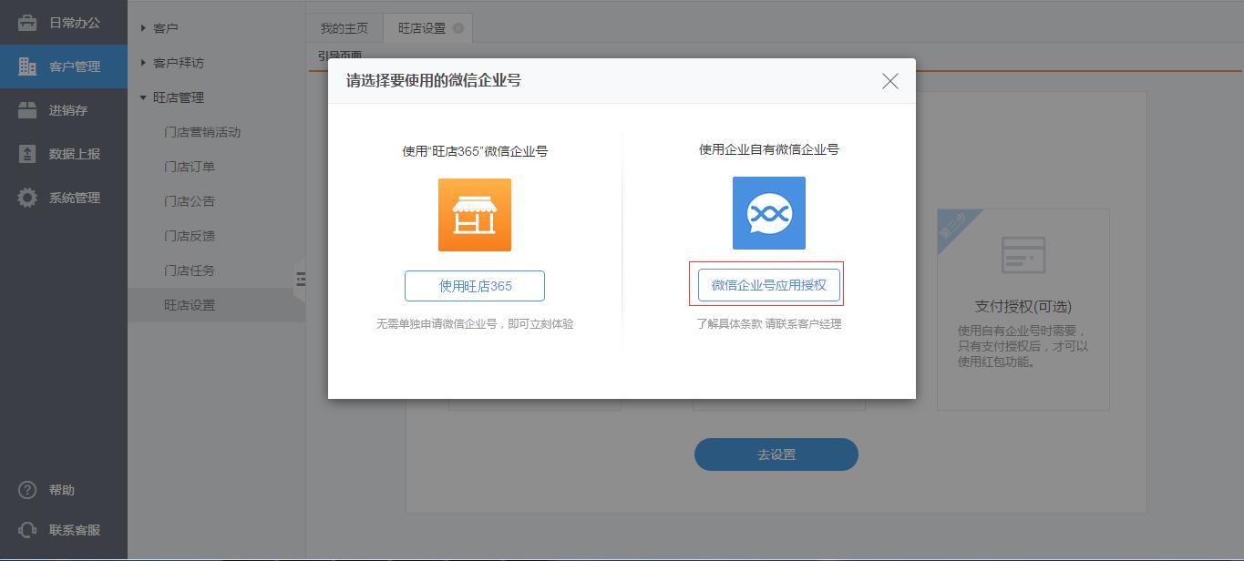 路径:客户管理—旺店管理—旺店设置—企业号设置
