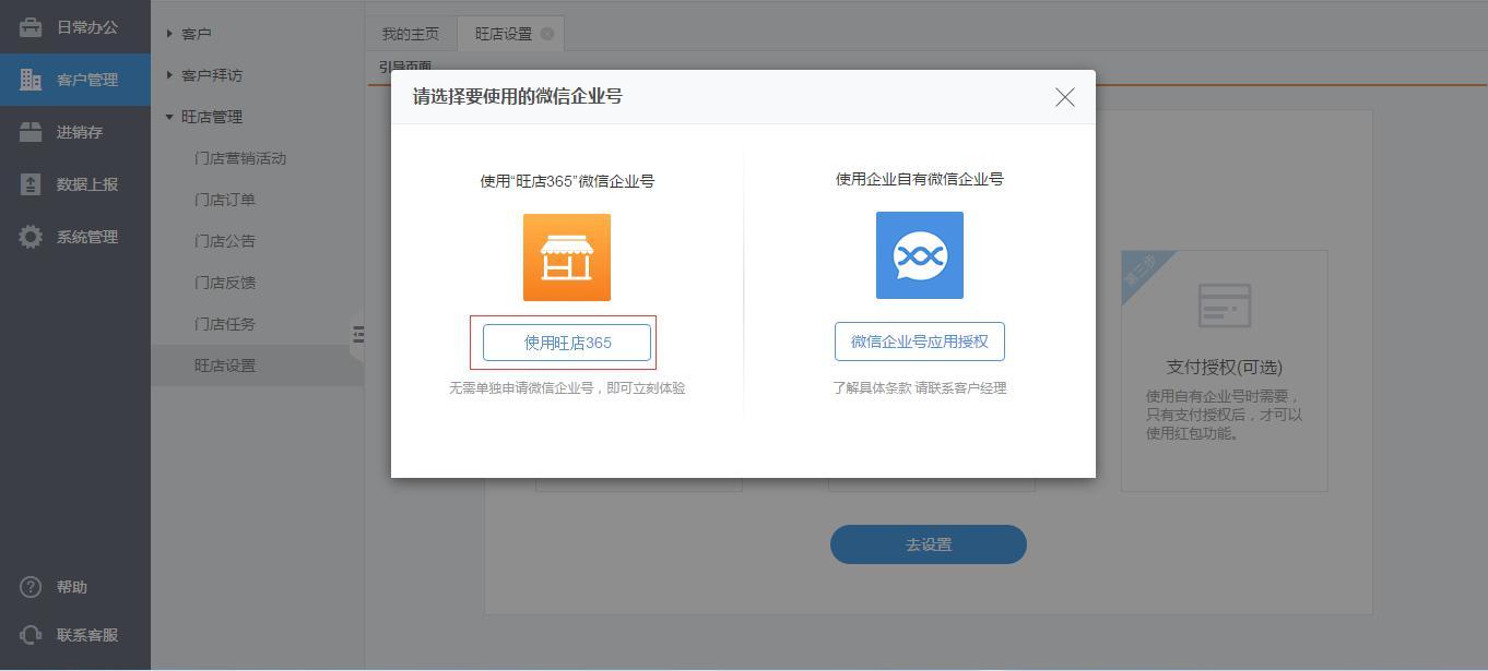 2.1、模式一:使用“旺店365”企业号