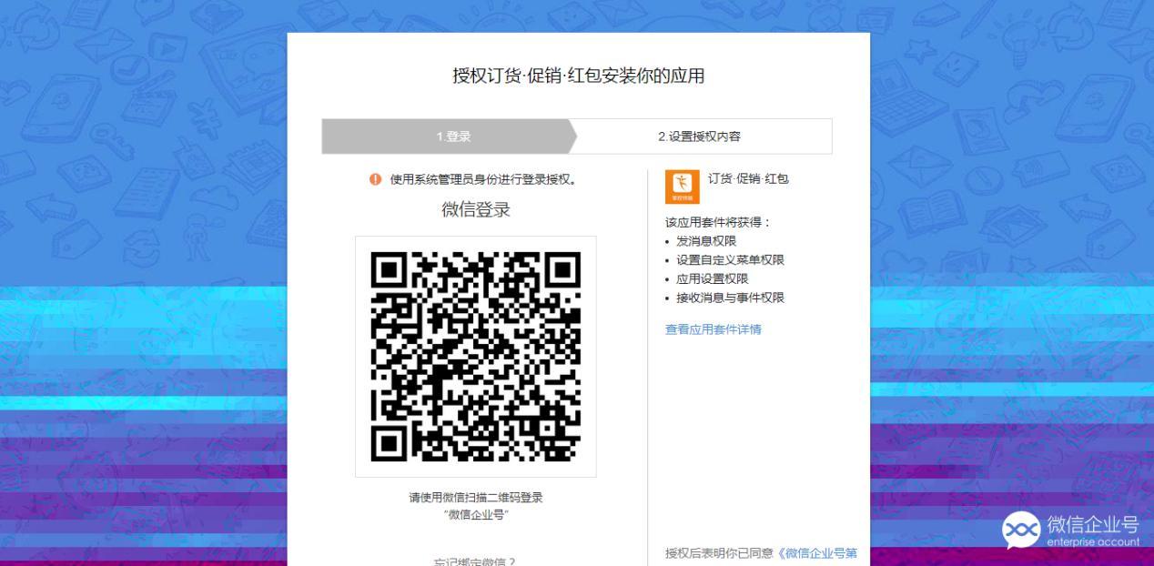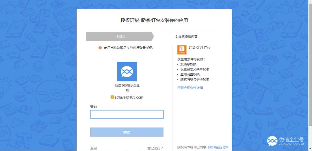 企业号授权时要用企业号的管理员账户登录。
