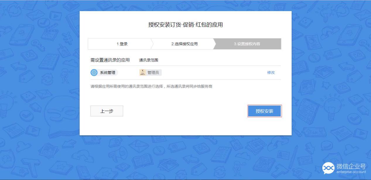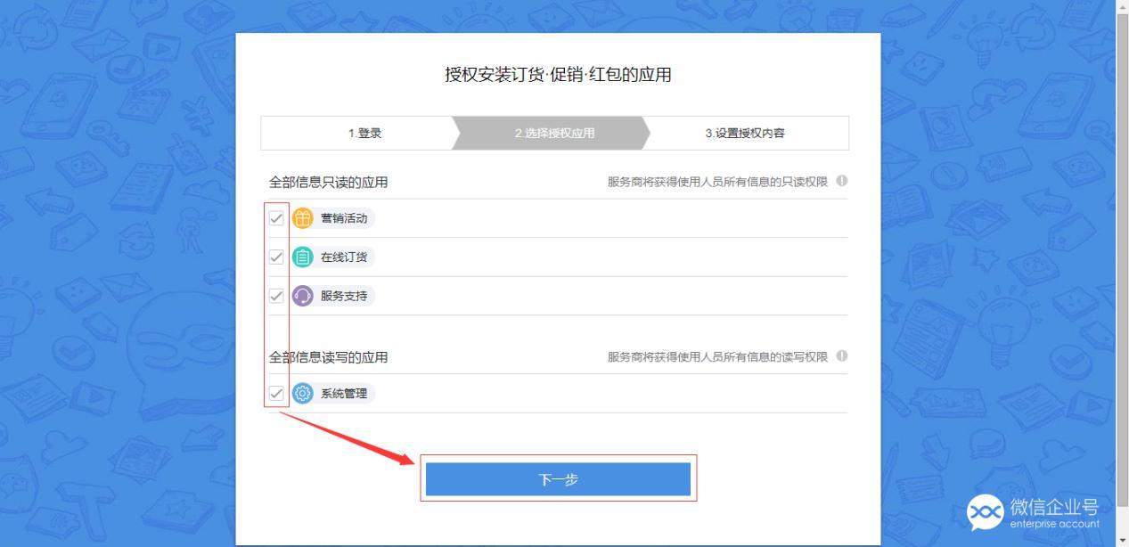 选择微信企业号应用授权