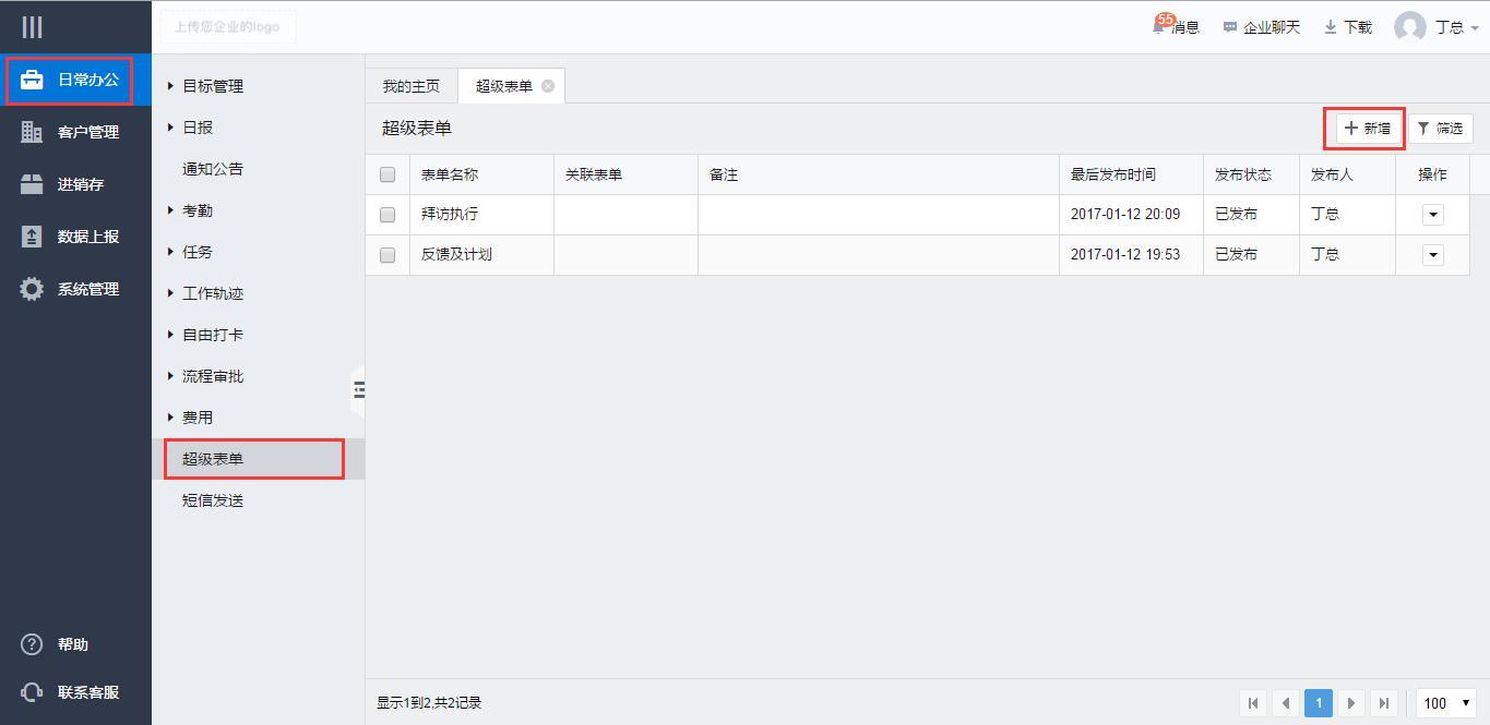 WEB端登录--日常办公--超级表单--新增