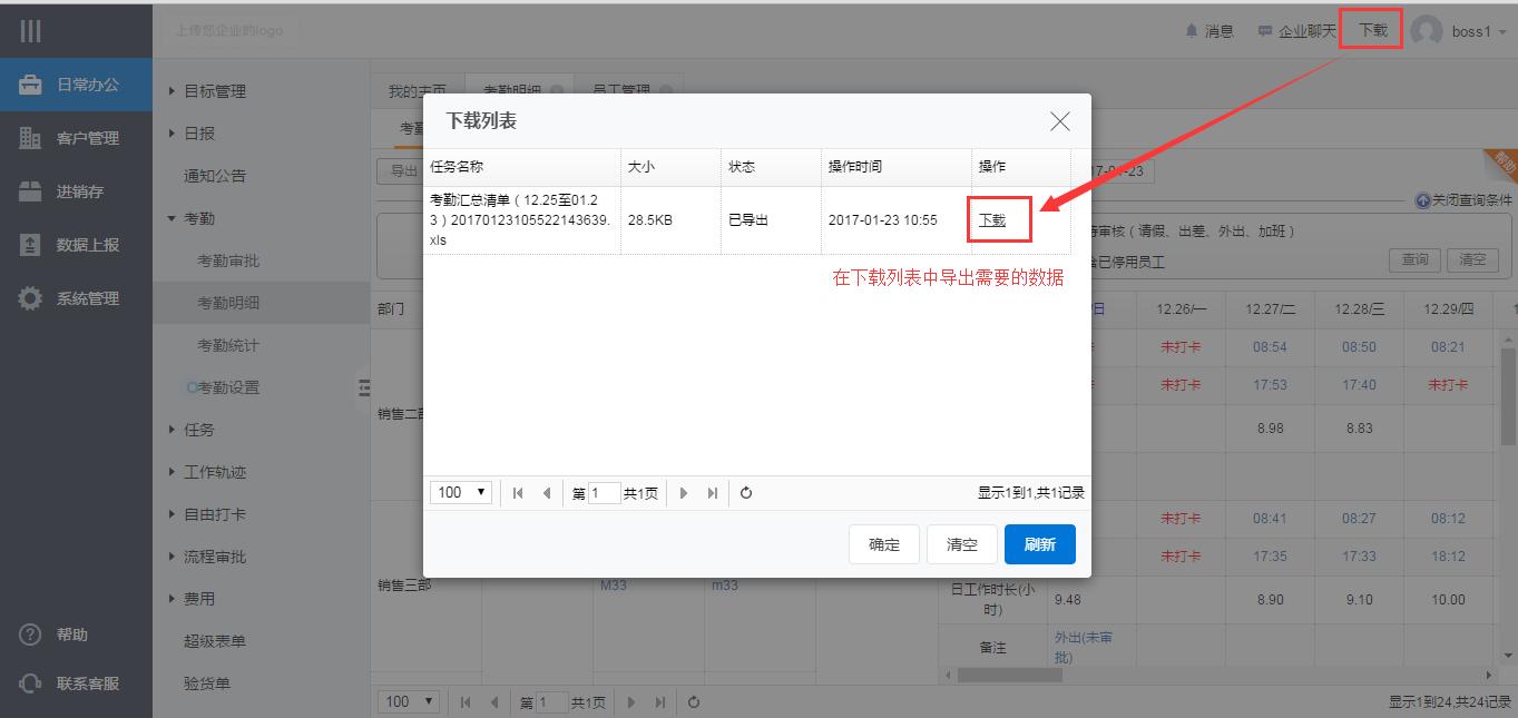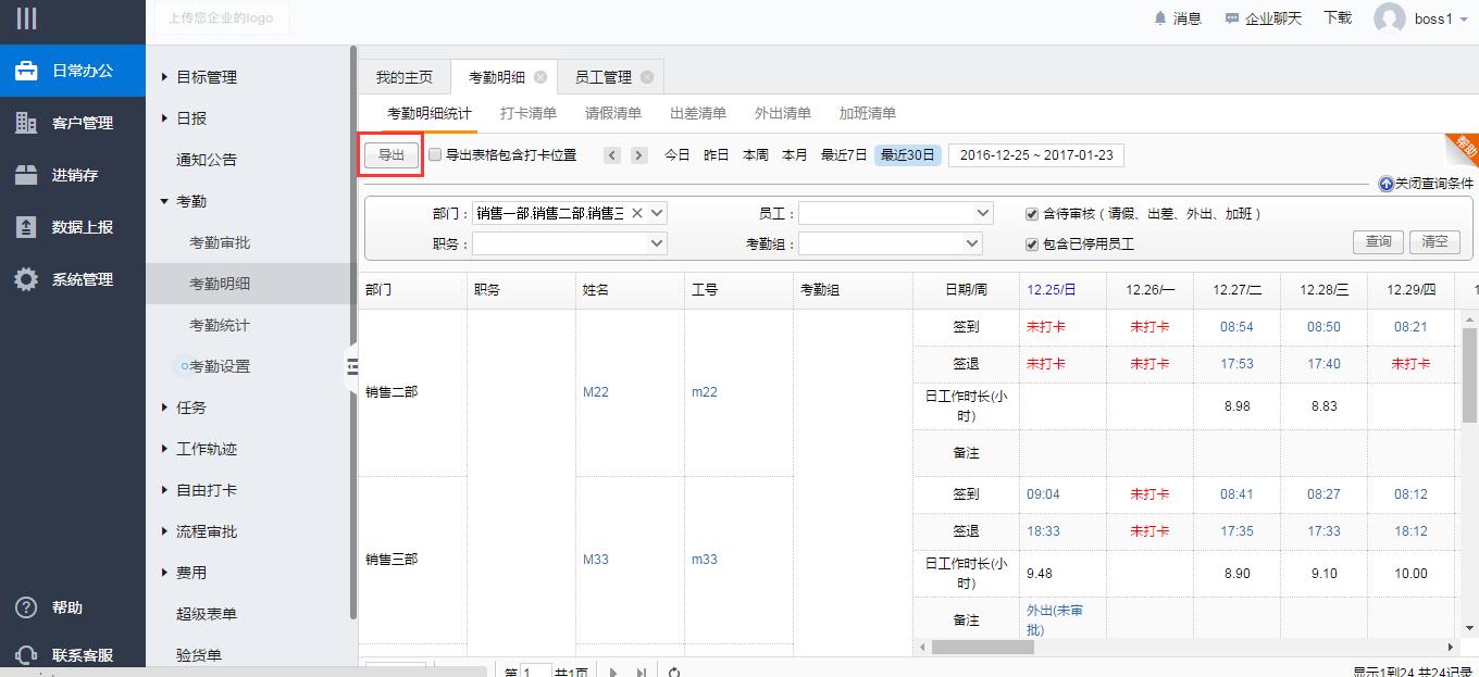 2、考勤明细的导出