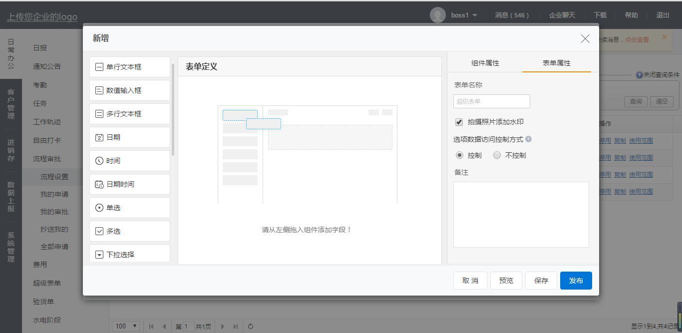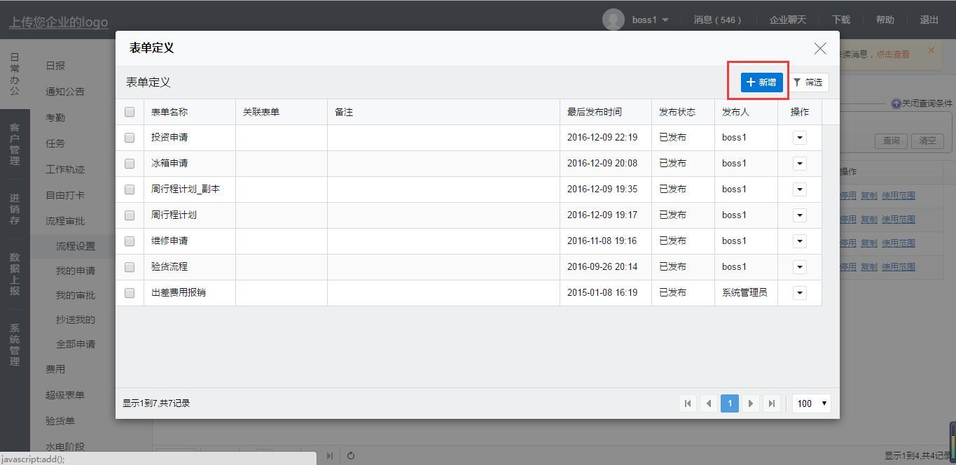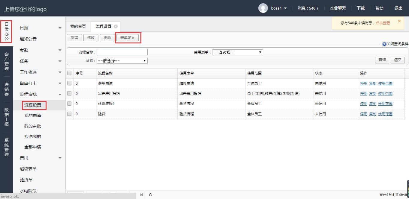 点开日常办公--流程审批--流程审批设置--表单定义