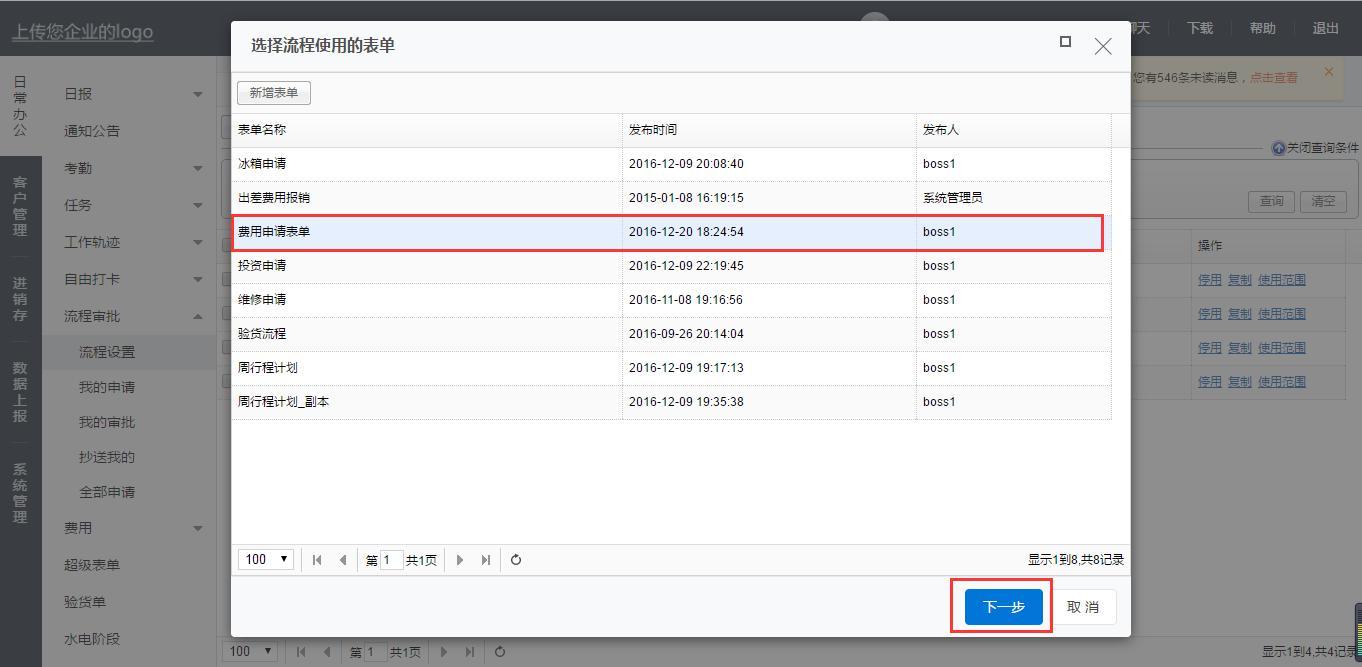 选择刚刚添加的表单,点击下一步: