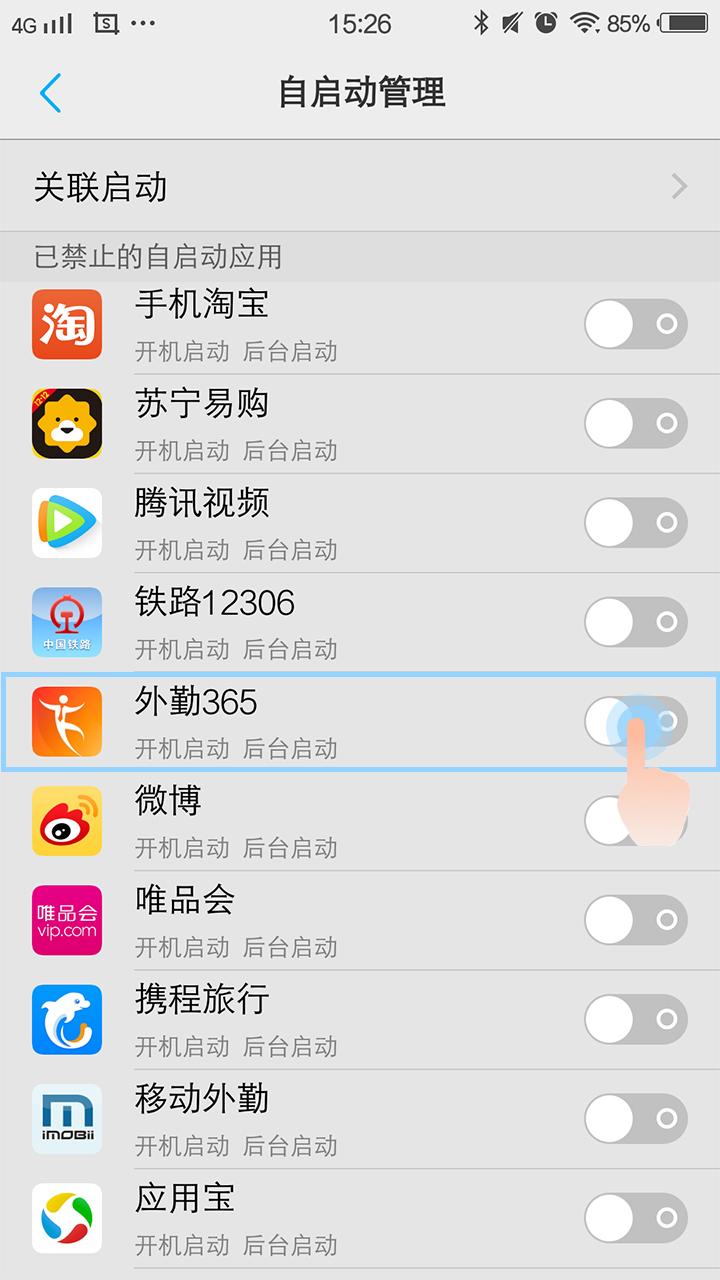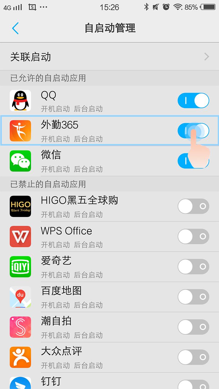 3.选择【软件管理】---选择【自启动管理】---【外勤365】---设为自启动