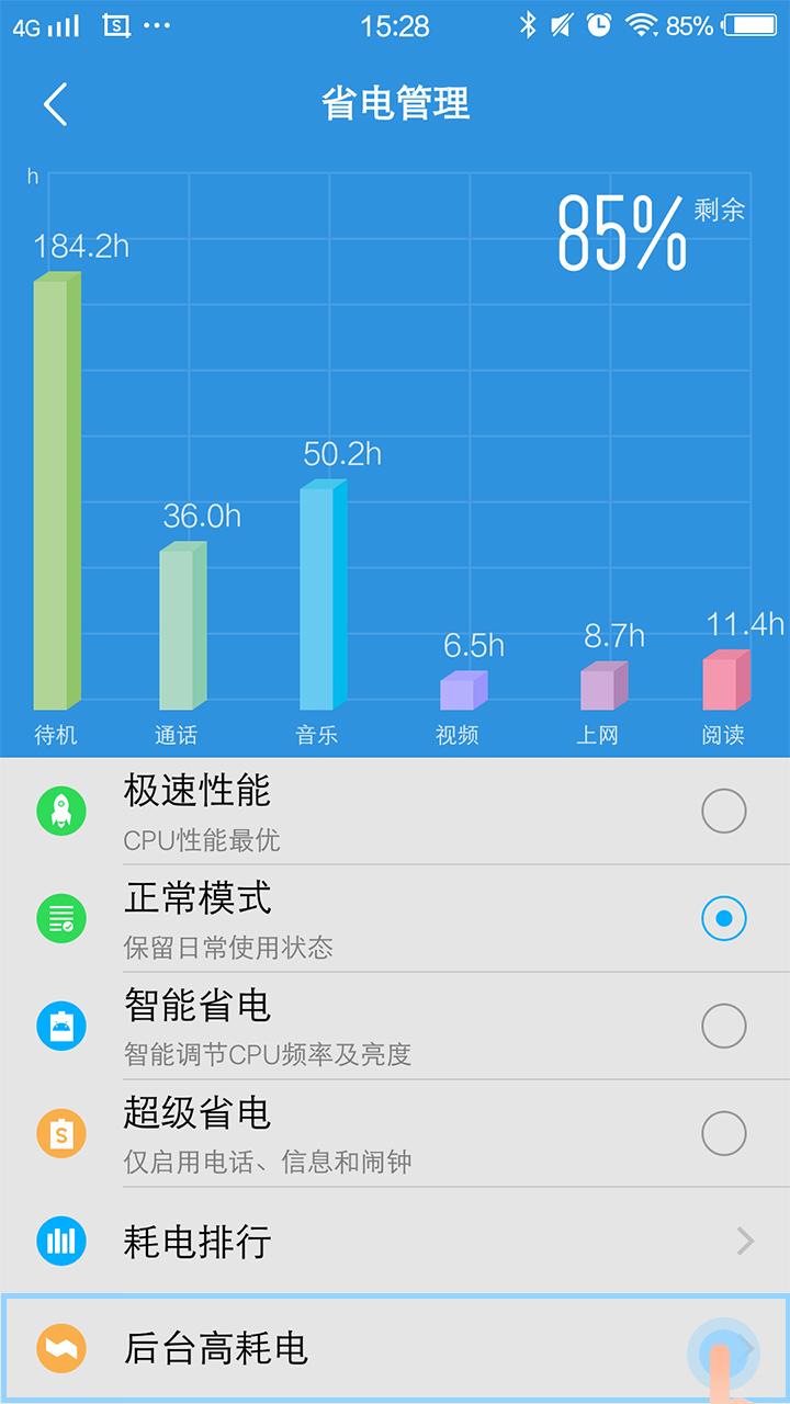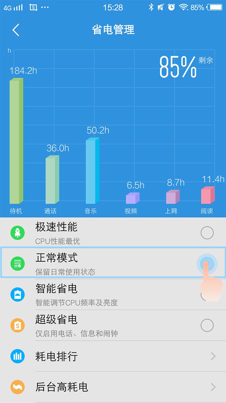 4.选择【省电管理】---【正常模式或极速模式】--二选一
