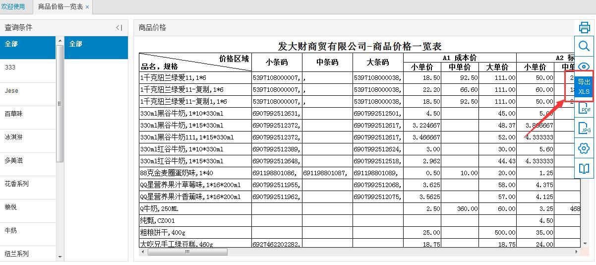 导出商品价格(注:请检查已导入商品信息)