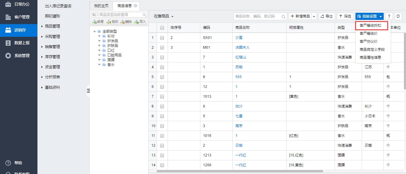 等级后,需要给各类客户设置等级折扣。