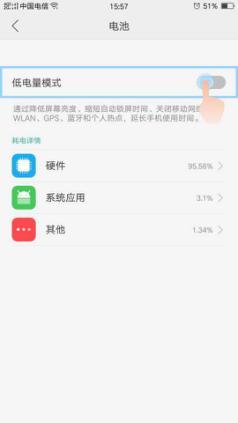 二.手机设置--电池--关闭低电量模式