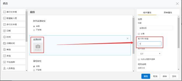首先在高级拜访-拜访步骤设置-表单定义里面找到拍照控件所在的表单,然后点击修改,找到表单里面的拍照控件,然后在组件属性中,调整大照片数量。