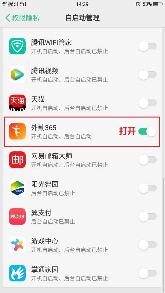 一.手机管家-权限隐私-自启动管理-外勤365打开