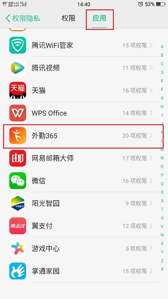 按应用选择外勤365,把权限都打开