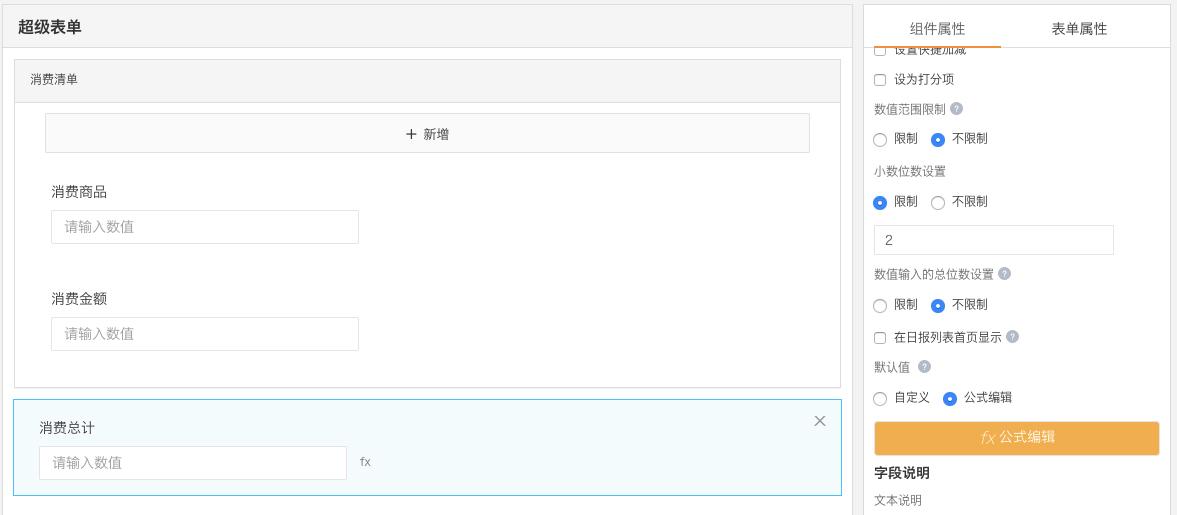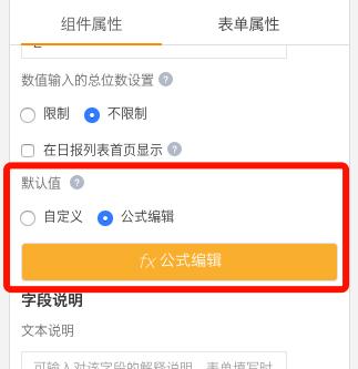 然后点击公式编辑按钮,即可进入公式编辑页面。注意:仅“数值输入框”组件支持公式编辑。