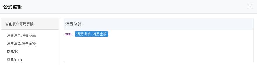 计算子表单“消费清单”中,所有条目的消费金额的总和