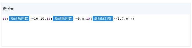 根据商品陈列数计算得分:陈列10个10分,5~9个8分,3~4个7分,3个以下0分