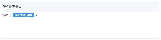 若想获得两个班级的最高分可设置公式MAX(A班最高分,B班最高分),暂不支持直接设置MAX(A班成绩.分数,B班成绩.分数)