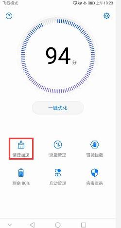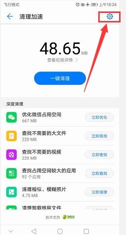 2、打开手机管家-清理加速-右上角设置小齿轮图形—关闭自动清理