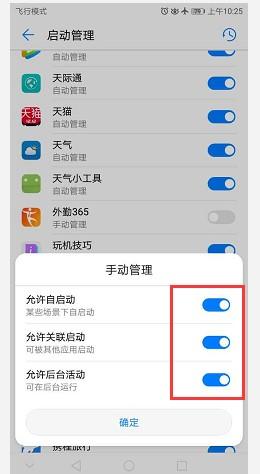 4、点击启动管理,找到外勤365,打开自启动、关联启动和后台活动。