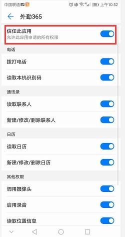 5、手机设置-应用和通知-权限管理-设置单项权限,打开信任此应用。