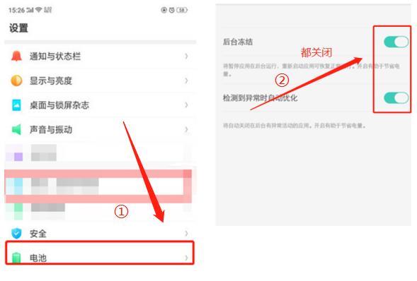 2、打开【设置】,点击【电池】,关闭低电量,【耗电详情】点击【外勤365】,关闭下图两项: