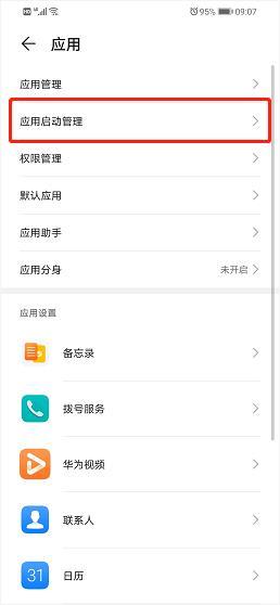 2、手机设置里面找到【应用】模块,打开【应用启动管理】,找到外勤365,【关闭】自动管理,跳出的弹窗全部打开。