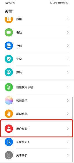5、手机设置里面找到【用户与账户】模块,最下方【添加账户】,添加外勤365