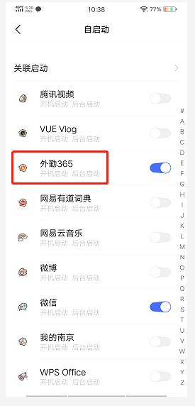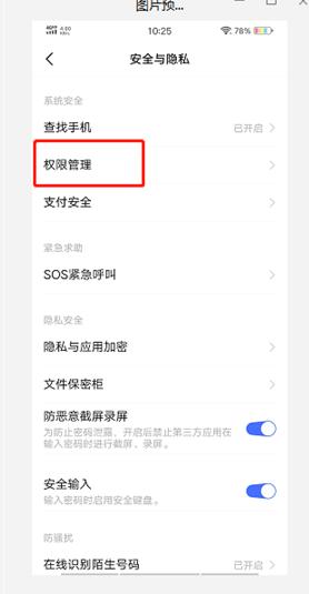 3.打开vivo系统的设置-安全、隐私,打开权限管理,点击自启动-外勤365开启