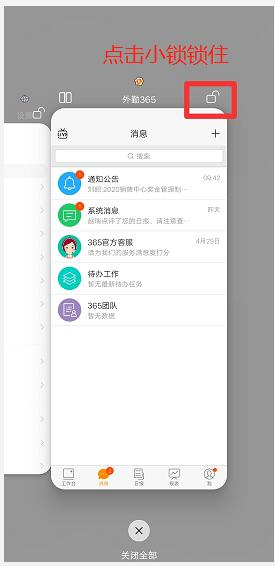 4. 调出多任务界面(按屏幕下方的方块导航键,或者从屏幕底部的中间上滑并停留一会可以调出多任务管理界面),找到外勤365的卡片,点击右上方的小锁,使其变成锁住的状态