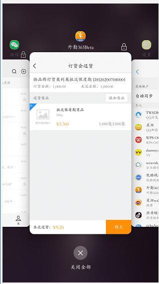 5.调出多任务界面(按屏幕下方的方块导航键,或者从屏幕底部的中间上滑并停留一会可以调出多任务管理界面),找到外勤365的卡片,点击右上方的小锁,使其变成锁住的状态