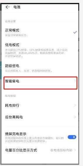 3.打开vivo系统的设置-电池,点击智能省电,关闭睡眠模式