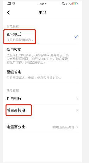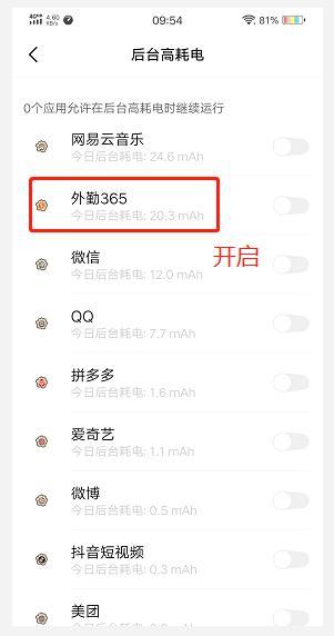 2. 打开vivo自带的i管家,点击 电池管理,选择正常模式,点击后台高耗电-外勤365(打开)