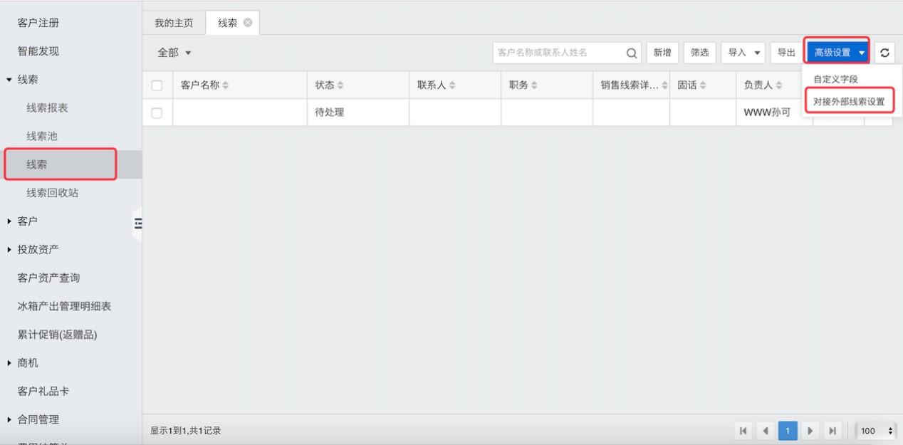 点开线索--高级设置-对接外部线索设置