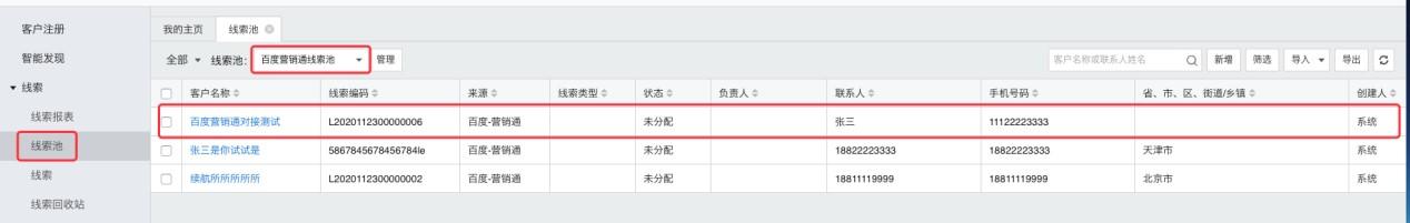 发送完成后在外勤-365对应的线索池中查看是否成功接收