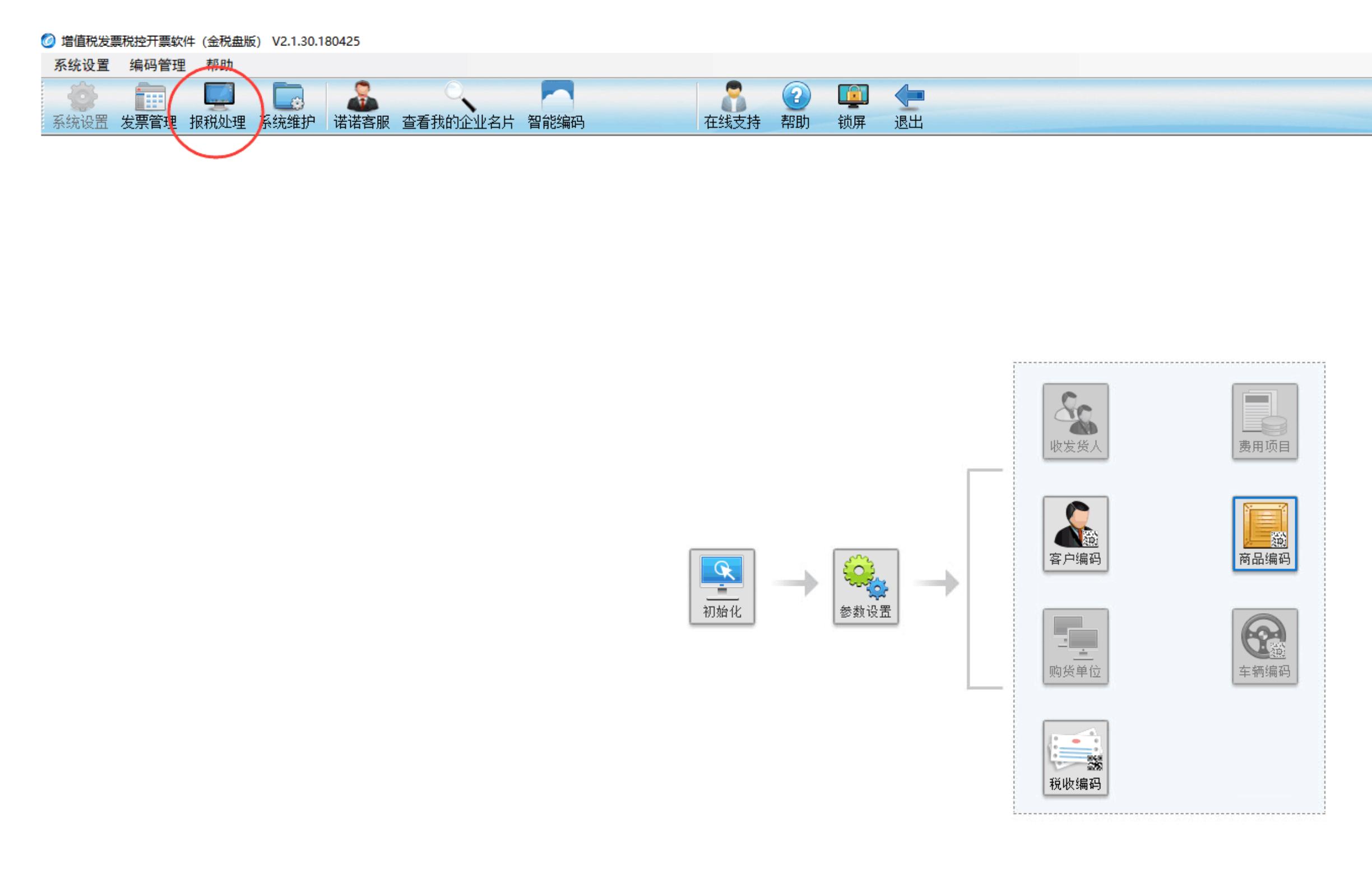 ,点击【报税处理】菜单;