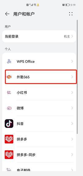 5、手机设置里面找到【用户与账户】模块,最下方【添加账户】,添加外勤365