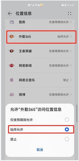 7、手机上方搜索框输入【定位服务】搜索下,将外勤365设置为始终允许