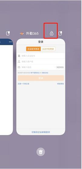 8、调出手机后台多任务界面,点击下方方块键或者从屏幕下方上滑,找到外勤365卡片,下拉上锁。