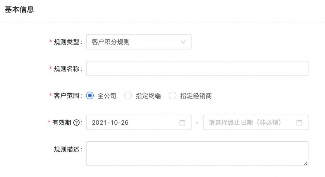 l 有效期,设置积分规则的有效期,当超出规则有效期范围,积分规则不再触发积分发放