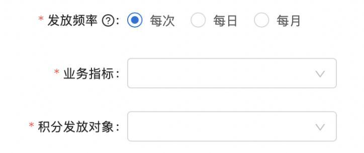 l 发放频率,分为按次/按日/按月 3个发放周期,按次发放是指在奖励动作完成后即可发放积分。按日发放,是汇总一天的业务数据,在第二日凌晨发放积分。按月发放,是汇总一个自然月的业务数据,在次月1号凌晨发放积分。